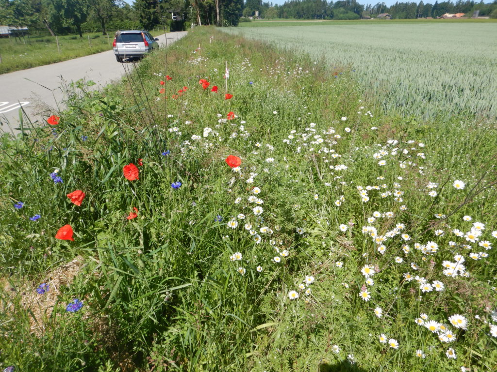 Buntbrache entlang einer Strasse (Foto: Stefan Lutter, BFH HAFL).