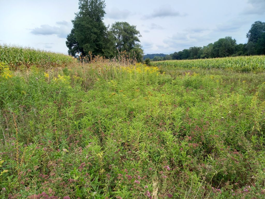 Brache mit starkem Bewuchs durch Goldruten. (Foto: Sophie Ortner, Grangeneuve)