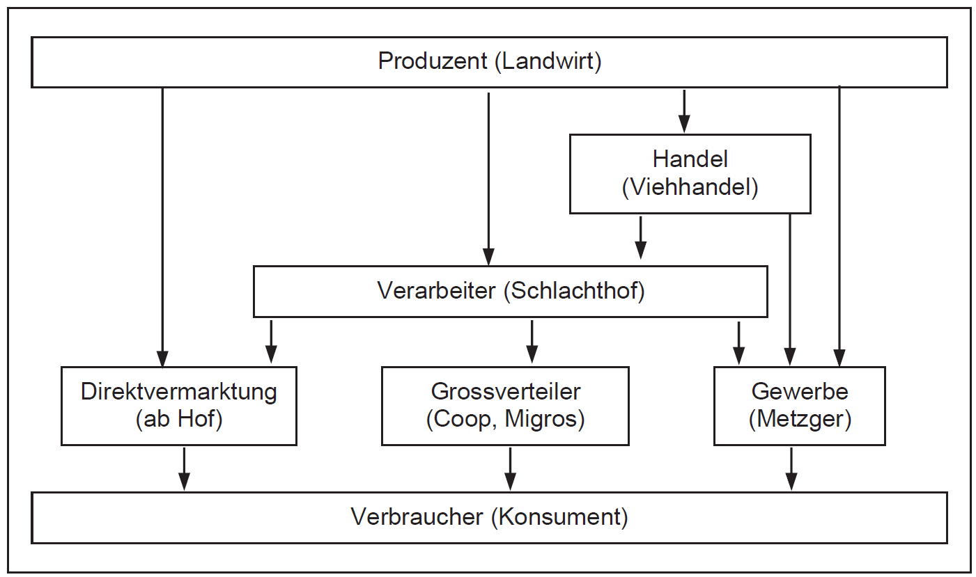 Weg, über den das Produkt vom Hersteller bzw. Anbieter zum Verwender oder Verbraucher gelangt.